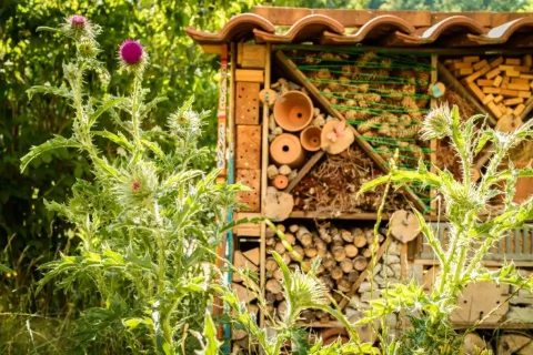 Intégration paysagère : Nous souhaitons intégrer au mieux notre établissement au sein de son environnement. Pour cela, nous respectons les espaces verts (large superficie libre, espèces adaptées à la nature des sols et aux conditions climatiques, zone de biodiversité, tonte modérée) et nous avons installés des hébergements locatifs en matériaux naturels ou recyclables et bien intégrés dans le paysage. Nous sommes Refuge LPO depuis plusieurs années.