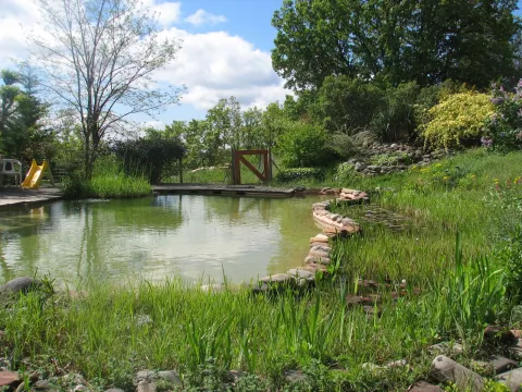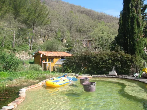 Ce très beau jardin propose un panarama exceptionel de environ cinq hectares dans les contreforts du Larzac. Il y a des jardins, une forêt, des landes et des falaises. Il y a aussi des sources, un petit lac, et une piscine naturelle.