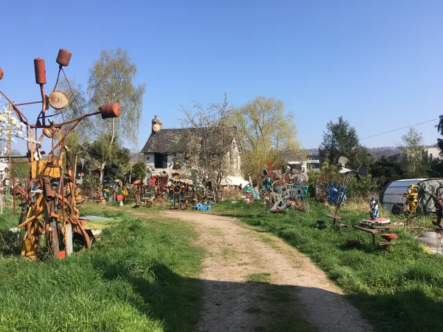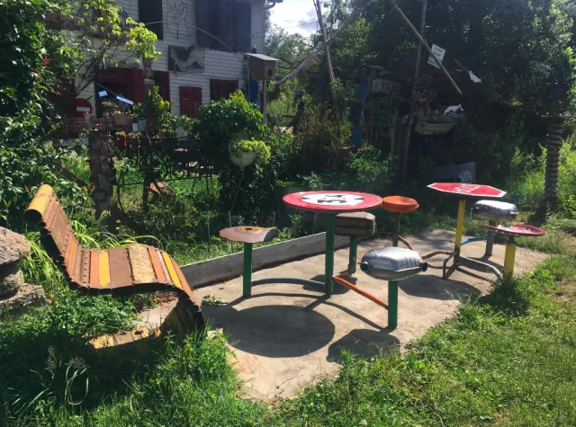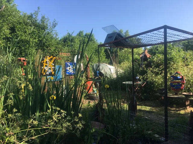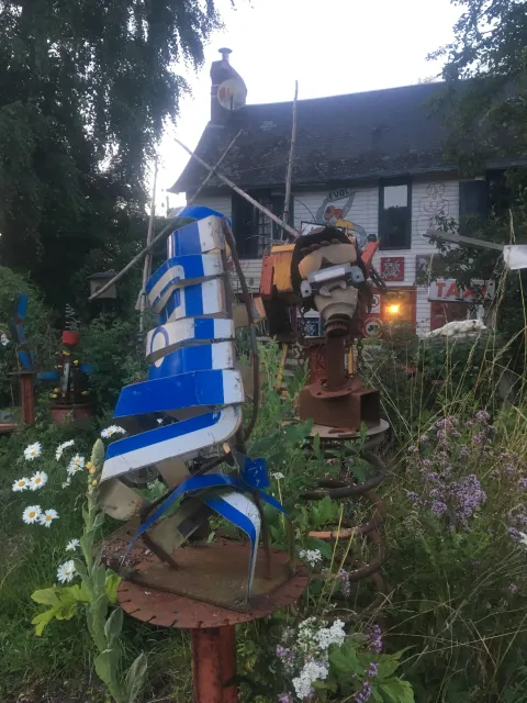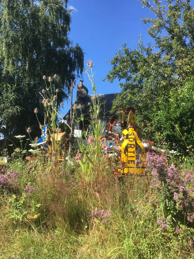 Enseigne locale, ferrailleur soudeur, figure bon teint, embourbé dans sa campagne Roumoise, carapacé dans des constructions métallo-fantastiques. Prince batracien marécageux, cultivant les mauvaises herbes, ayant pour uniques sujets une bande de chats comploteurs et querelleurs. Il est imbattable sur le nom des plantes qui ne servent à rien, qui gratouillent ou pis ! Donnent la nausée.