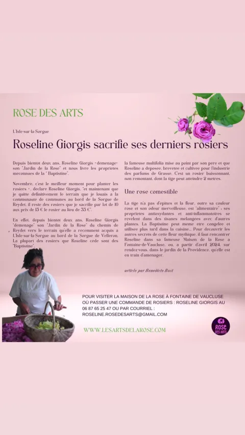 Elle a pour but de promouvoir éditer et distribuer dans le monde le rosier rare de la parfumerie Grassoise : la Centifolia Baptistine