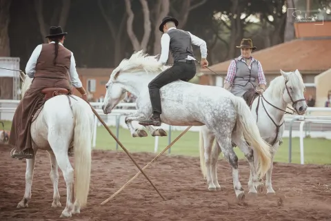 Je présente des spectacles équestres basés sur les chevaux en liberté avec poulains suités de ces juments et étalons.