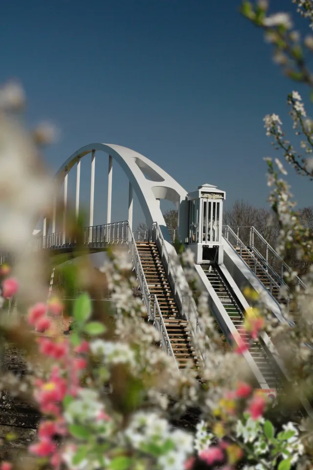 une passerelle reliant le chemin de Halage à l’ile de la Loge ;