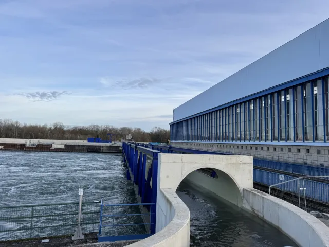 Mise en service en 2025, elle permet aux poissons de contourner l’usine hydroélectrique EDF pour remonter le Rhin.