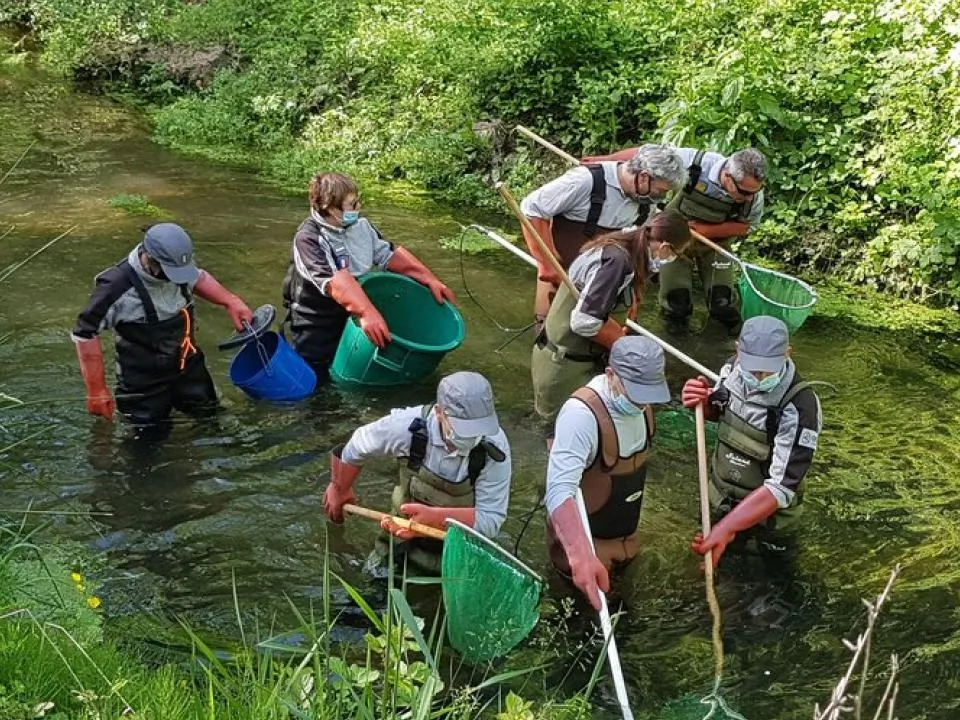 Démonstration d'un inventaire piscicole par pêche électrique sur la Véore