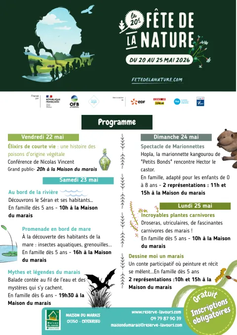 À l'occasion de la Fête de la nature, retrouvez-nous au marais de Lavours pour des activités en famille !